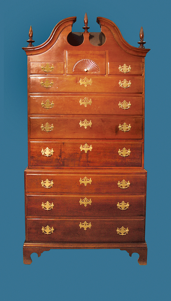 Home | Dealers | Constant, Douglas Inc. | A Fan Carved Bonnet Top Cherrywood Chest-on-Chest