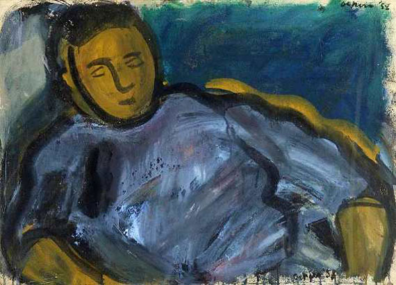Robert De Niro Sr. (1922-1993), Reclining Figure; Executed 1958; Signed and dated upper: R. DeNiro, 58; Oil on paper laid on board, 21 x 29 inches (53 x 73.7 cm).