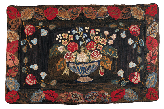 Chenille-Shirred Table Rug, New England, circa 1820. Ex. Mellon Estate 4'6" x 2'11"