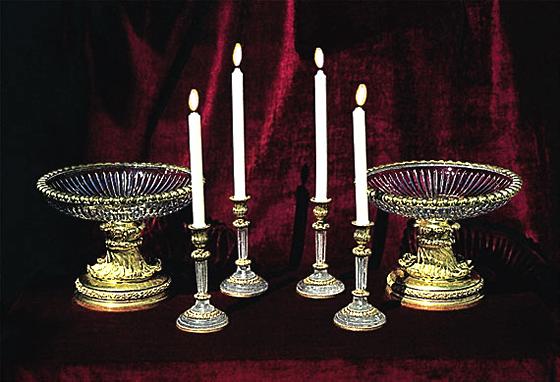 Set of four rock crystal and bronze dore candlesticks. Third quarter of the 18th century. Height: 8".