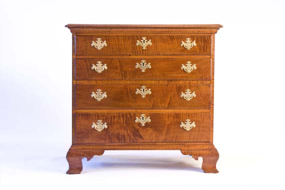 Home | Dealers | HL CHALFANT: American Fine Art & Antiques | Tiger Maple Chippendale Chest of Drawers