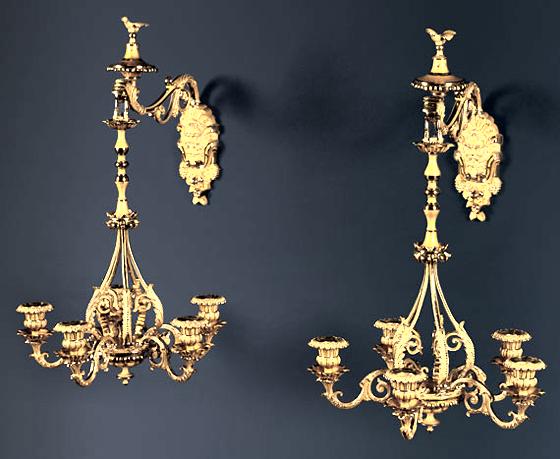 Home | Dealers | Clark, Charles & Rebekah | Pair of Hanging Five-Light Sconces