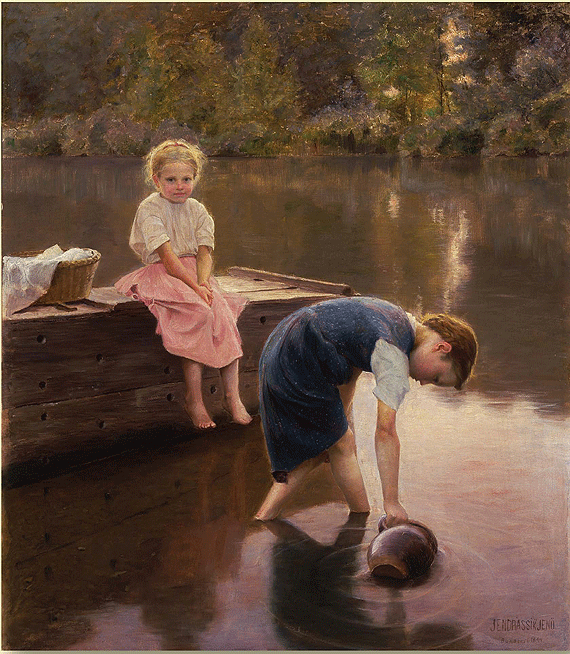 Jeno Jendrassik (1860-1919) Hungarian, Innocence, oil on canvas, 25 x 21 inches.