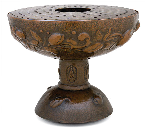 The Newlyn Industrial Class. The design attributed to John MacKenzie. Repoussee decorated and patinated copper.