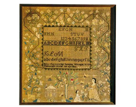 Betsy Farnum her Sampler Wrought in the Thirteenth year of her age 1800. Worked in vibrant colors.