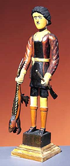 Carved and painted wood. Signed and dated Rosenloff 1925. Pieces by Rosenloff are in the collection of the Museum of American Folk Art.